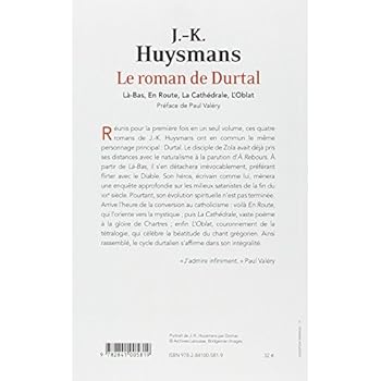 • Le chef-d'œuvre de Huysmans : la tétralogie de Durtal, le héros principal, réunie en un seul volume. • Enfin disponible à nouveau. Réunis pour la première fois en un seul volume, ces quatre romans de J.-K. Huysmans ont en commun le même personnage principal : Durtal. Le disciple de Zola avait déjà pris ses distances avec le naturalisme à la parution d' À rebours. Avec Là-Bas, il s'en détachera irrévocablement, préférant flirter avec le Diable. Son héros, écrivain comme lui, mènera une enquête approfondie sur les milieux satanistes de la fin du XIXe siècle. Pourtant, son évolution spirituelle n'est pas terminée. Arrive l'heure de la conversion au catholicisme : voilà En Route, qui l'oriente vers la mystique ; puis La Cathédrale, vaste poème à la gloire de Chartres ; enfin L'Oblat, couronnement de la tétralogie, qui célèbre la béatitude du chant grégorien. Ainsi rassemblé, le cycle durtalien peut s'affirmer dans son intégralité. " J'admire infiniment. " Paul Valéry